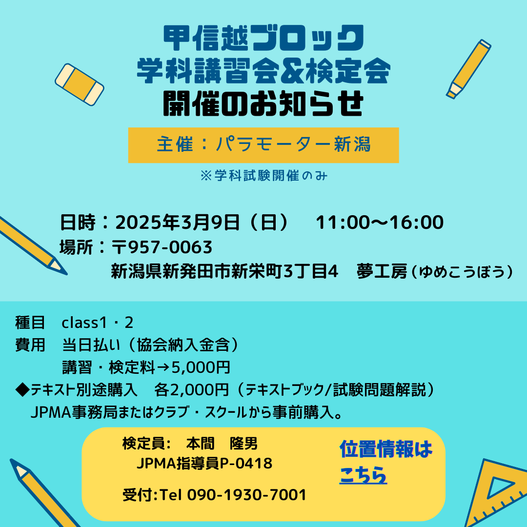 JPMA学科講習・検定会の開催のお知らせ